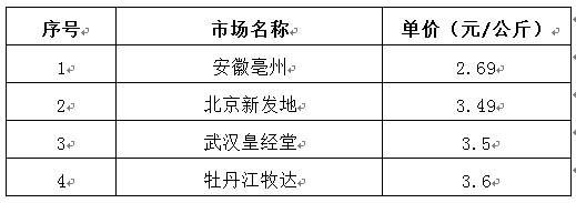 表2 全國(guó)部分重點(diǎn)市場(chǎng)生姜價(jià)格比較