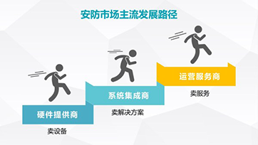 對比國外市場,我國安防運營服務規(guī)模占比顯著偏低,將成為廠商未來布局的重點。因此要加快運營服務市場發(fā)展步伐。安防運營服務是安防產(chǎn)業(yè)的重中之重,是全球安防產(chǎn)業(yè)未來發(fā)展的趨勢。在技術升級、產(chǎn)品同質(zhì)化和成本的降低的背景下,產(chǎn)品市場的利潤空間逐漸被壓縮,從硬件提供商(賣設備)——系統(tǒng)集成商(賣解決方案)——運營服務商(賣服務)已成為主流發(fā)展路徑。