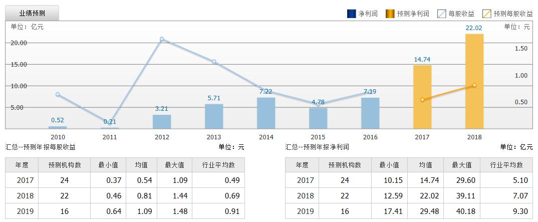 截至2017年8月3日,6個月以內(nèi)共有 24 家機構(gòu)對歐菲光的2017年度業(yè)績作出預(yù)測。預(yù)測2017年每股收益 0.54 元,較去年同比下降 21.65%;預(yù)測2017年凈利潤 14.74 億元,較去年同比增長 105.09% 。
