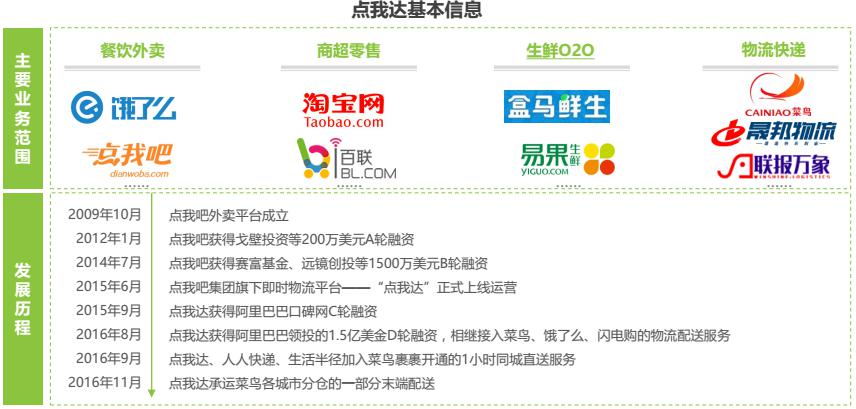 即時(shí)物流平臺(tái)點(diǎn)我達(dá)脫胎于外賣(mài)平臺(tái)點(diǎn)我吧,憑借出色的運(yùn)營(yíng)和調(diào)度能力快速發(fā)展。2016年7月,獲得阿里領(lǐng)投的1.5億美金D輪融資,并接入菜鳥(niǎo)網(wǎng)絡(luò)城市配送體系,成為阿里物流布局戰(zhàn)略重點(diǎn)。相較于其他即時(shí)物流平臺(tái),點(diǎn)我達(dá)擁有淘系電商龐大的資源背景作為支撐,訂單來(lái)源除O2O平臺(tái)之外還包括物流、電商等,在競(jìng)爭(zhēng)中占據(jù)絕對(duì)優(yōu)勢(shì)。