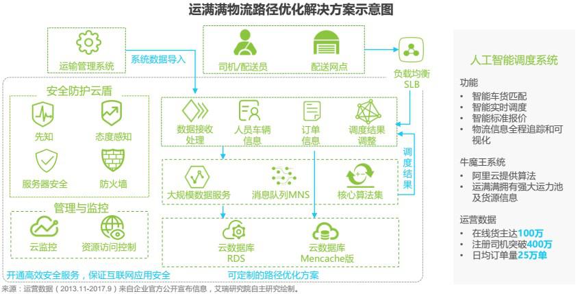 2016年底,運(yùn)滿(mǎn)滿(mǎn)攜手阿里云,發(fā)布了“牛魔王”人工智能調(diào)度系統(tǒng),結(jié)合運(yùn)滿(mǎn)滿(mǎn)的數(shù)據(jù)和用戶(hù)場(chǎng)景、以及阿里云的算法團(tuán)隊(duì),共同推動(dòng)干線配貨人工調(diào)度朝著智能化方向推進(jìn)?!芭D酢毕到y(tǒng)是基于云計(jì)算、大數(shù)據(jù)、移動(dòng)互聯(lián)網(wǎng)和人工智能技術(shù)的公路物流領(lǐng)域高新技術(shù)綜合應(yīng)用的典型代表,可以實(shí)現(xiàn)服務(wù)車(chē)主與貨主的智能車(chē)貨匹配、智能實(shí)時(shí)調(diào)度、智能標(biāo)準(zhǔn)報(bào)價(jià)及對(duì)物流信息全程追蹤和可視化,顯著提升公路干線物流貨源、車(chē)輛、路線、價(jià)格匹配速度、精準(zhǔn)度和運(yùn)輸組織效率。