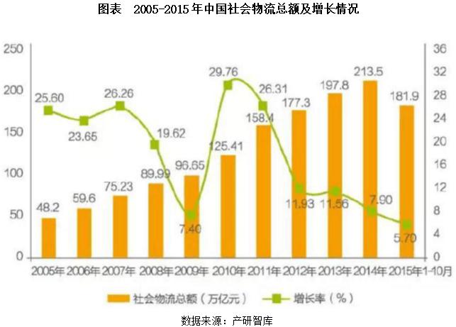 2015年1-10月,全國(guó)社會(huì)物流總額為181.9萬(wàn)億元,按可比價(jià)格計(jì)算,同比增長(zhǎng)5.7%,增速較1-9月回落0.1個(gè)百分點(diǎn),增速比去年同期回落2.6個(gè)百分點(diǎn)。